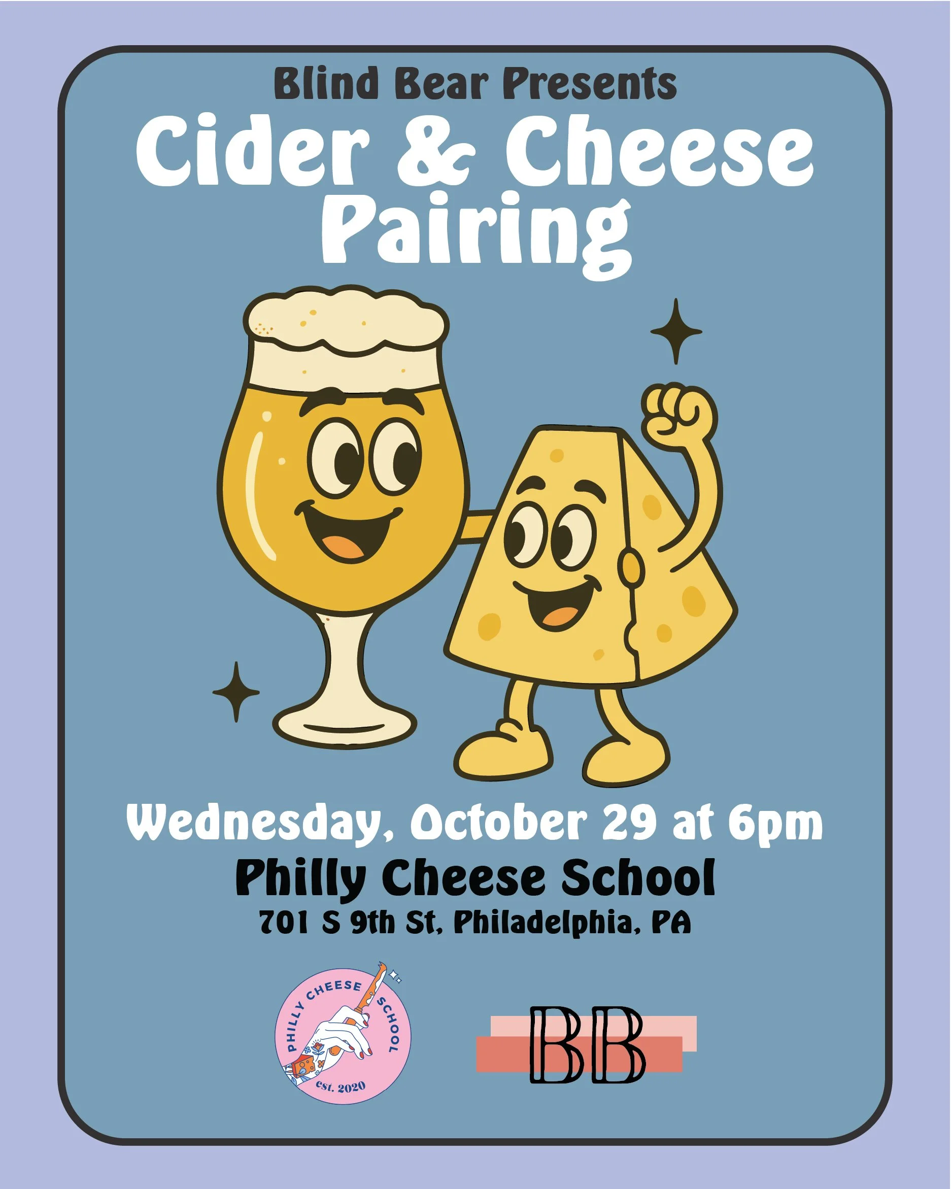 We have a perfectly cheesy way for you to celebrate. Philly Cheese School is excited to team up with Claire Trindle, a seasoned cider aficionado and Pennsylvania’s first female Certified Pommelier, for an epic cider and cheese pairing class! Claire is not just a certified (literally) cider expert – she's an experienced beverage pro and the mind behind Blind Bear Beverages, where she leads tasting experiences and consults with bars looking to take their drinks menu to the next level. Get ready for a super informative session where Claire breaks down the magic behind some cool ciders and how they can pair with the perfect cheeses.